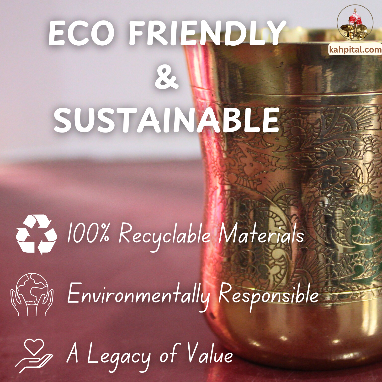 Plastic and synthetic drinkware contribute to environmental pollution. A brass cup is 100% biodegradable, recyclable, and lasts for generations, reducing waste and promoting sustainability.